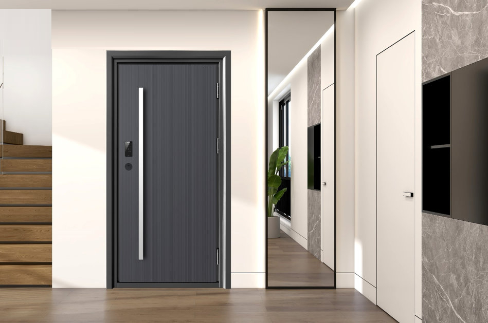 突破传统钢制门的卷板束缚,混搭包容的轻奢设计风格带来眼前一亮的时尚质感。莫兰迪灰麻布纹搭配家居设计常用的颜色拼接设计,带来一加一大于二的视觉观感,与珍珠黑圆管长拉手色调和谐而质感有别,显现出空间层次感,犒赏有追求有品位的时尚都市人。